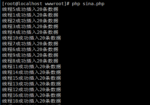 echo "线程{$this->name}成功插入{$ret}条数据\\n" ;
