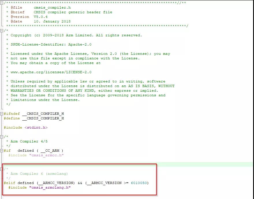 判断当前__ARMCC_VERSION的版本号,然后在包含cmsis_armclang.h头文件,这个文件中就已经帮我们做好了AC6所需要的兼容性修改。参考官方的文档“apnt_298,Migrate ARM Compiler 5 to ARM Compiler 6 MDK Tutorial”,可以知道在C语言部分需要做以下的修改: