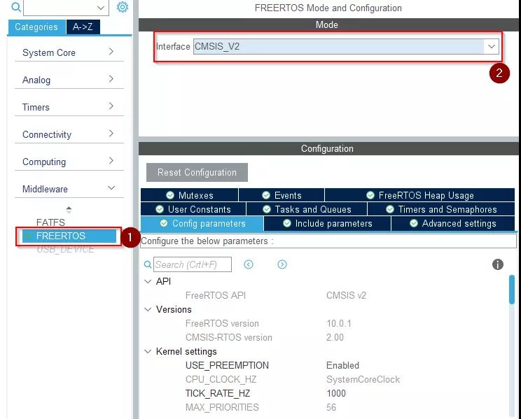 通过ST官方的CubeMX可以非常方便地在项目中添加FreeRTOS。