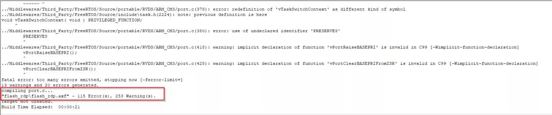 查看了错误的源头,主要错误都在port.c和portmacro.h这两个文件中,自己动手移植过FreeRTOS的同学应该知道,一般适配自己的硬件平台,所要做的移植工作,都会放到这个两个文件中;