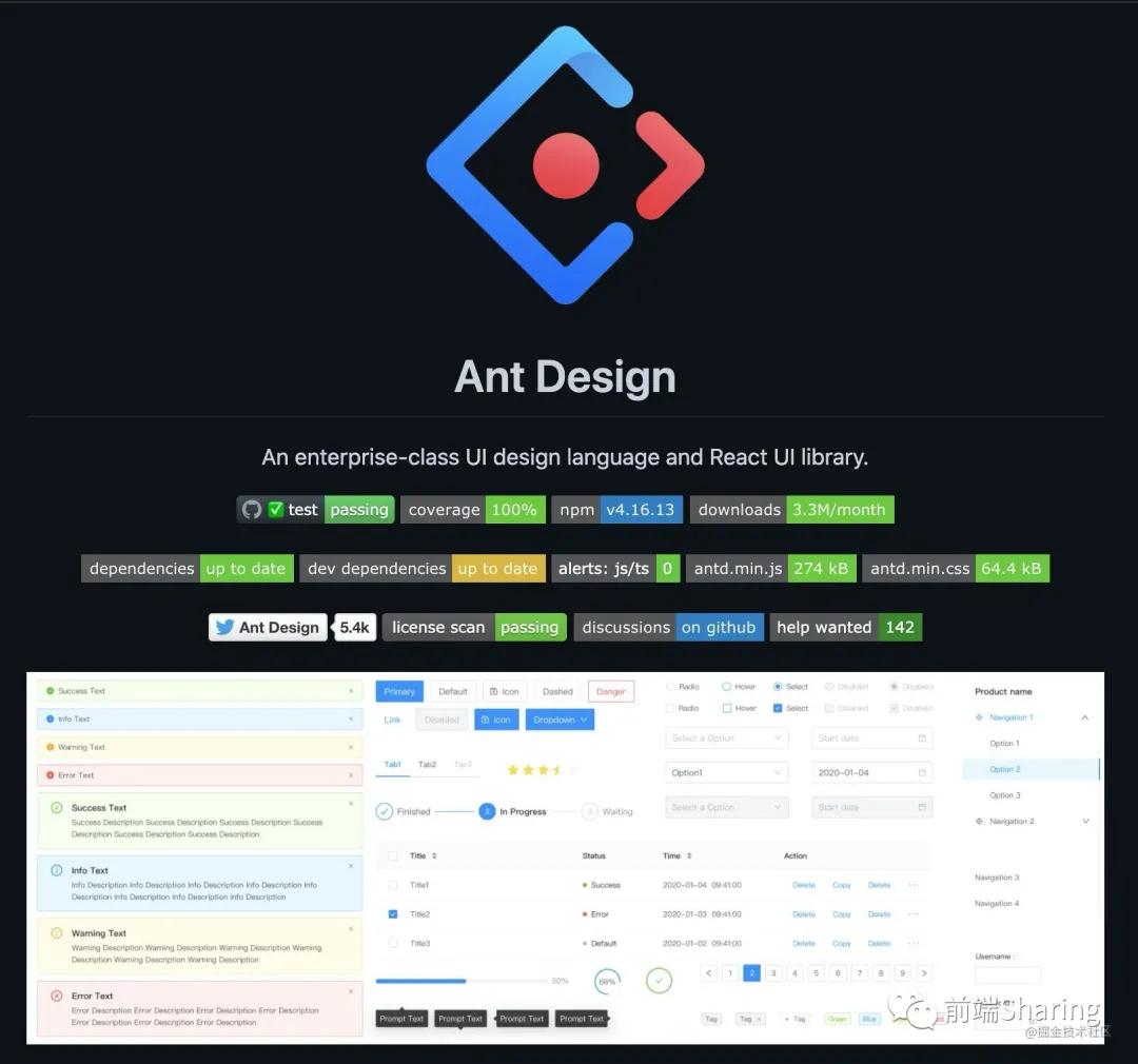 要说 React 最受欢迎的 UI 组件库,那么我第一个想到的就是 Ant Design,Ant Design 提供了数十种常用的组件,比如 Button,Menu ,Table 等。