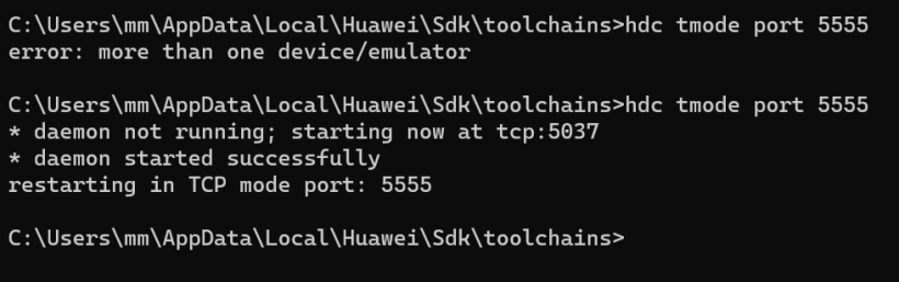 tip1:hdc工具在C:\\Users\\mm\\AppData\\Local\\Huawei\\Sdk\\toolchains目录下