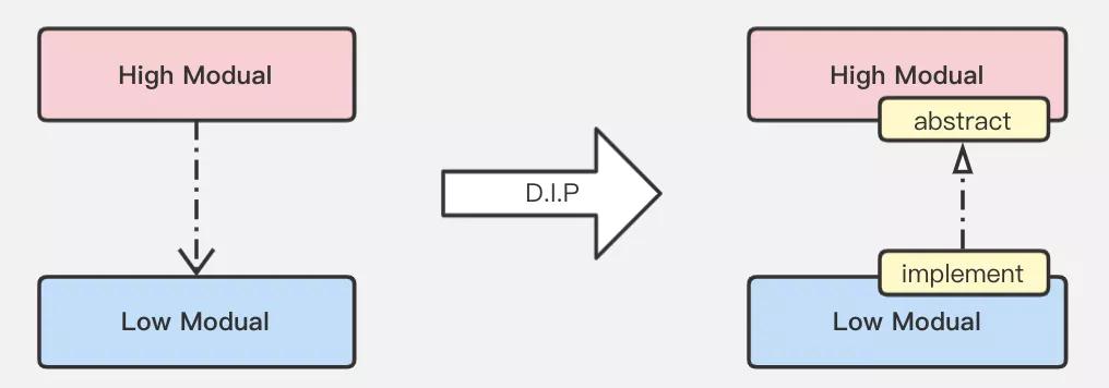 译:高层模块不应该依赖低层模块,两者都应该依赖抽象;抽象不应该依赖细节,细节应该依赖抽象。