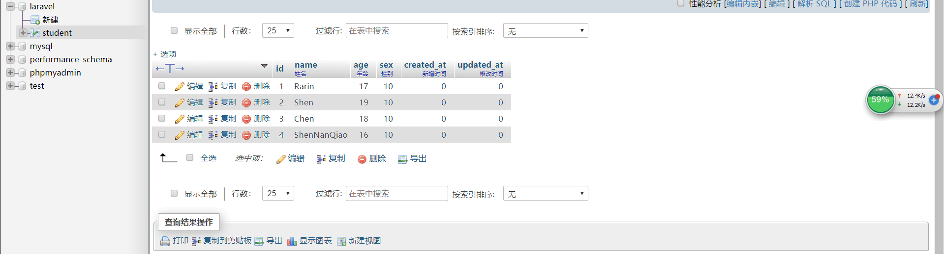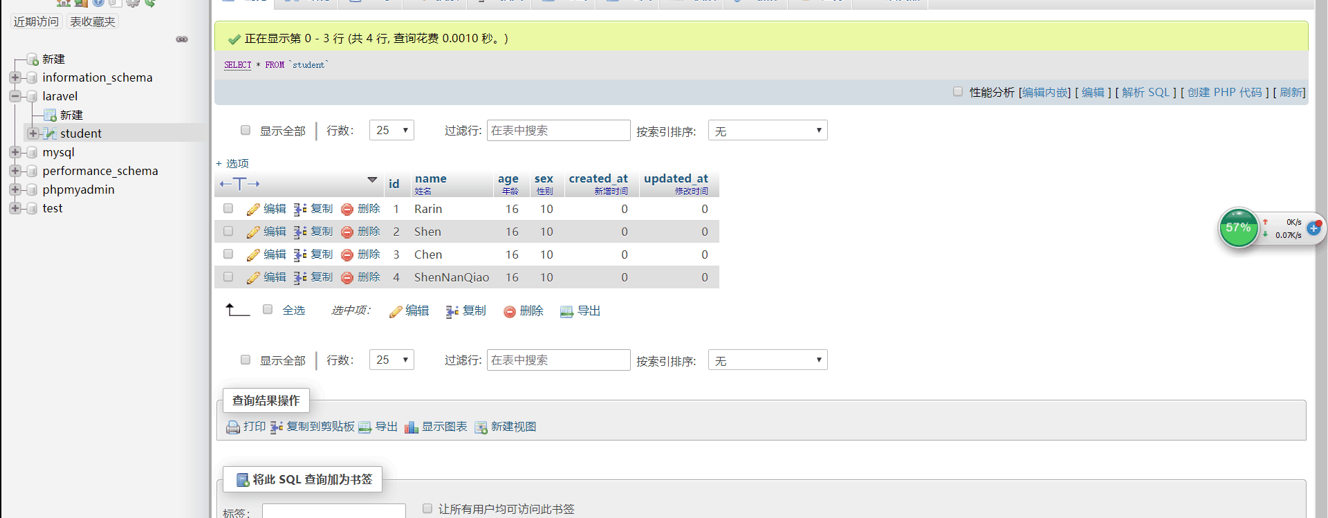 里面共有四条数据,好,那么我们先使用模型更新,更新我的第四条数据,代码如下: