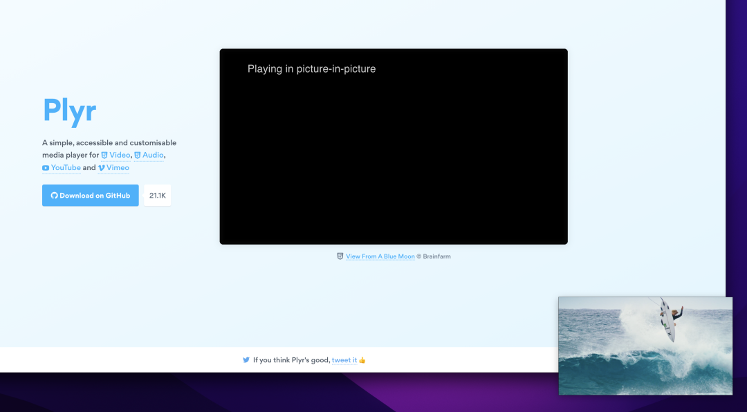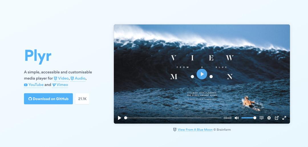 这个库的名字叫做 Plyr,顾名思义其实就是 Player 的缩写,整体的预览效果如下: