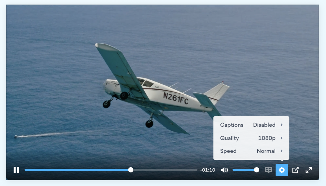 - settings:是一个列表,我们可以控制 settings 的功能列表,比如配置成 ['captions', 'quality', 'speed', 'loop'] 即可控制设置功能里面出现字幕、分辨率、速度、循环播放等控制。