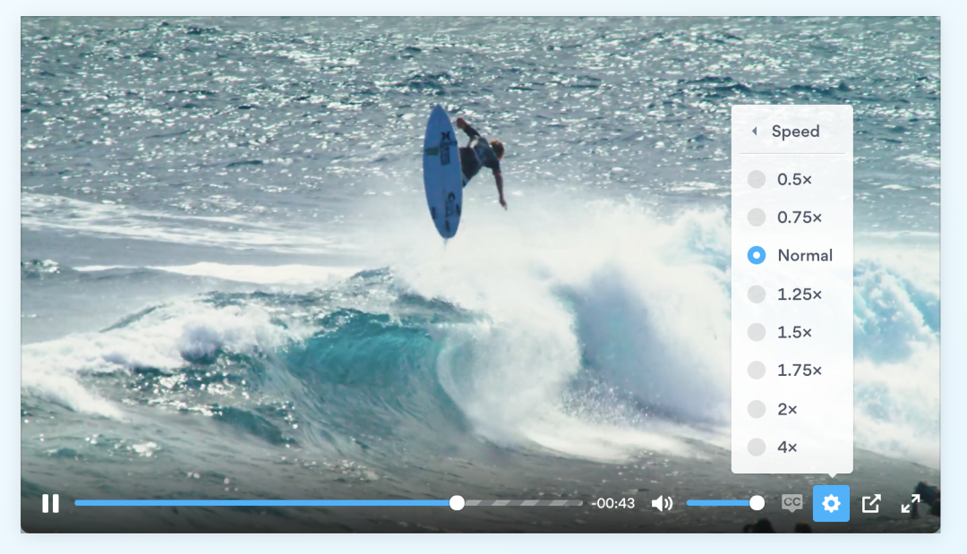 其中播放速度控制还支持各种自定义速度,比如 1.25 倍、4 倍等等: