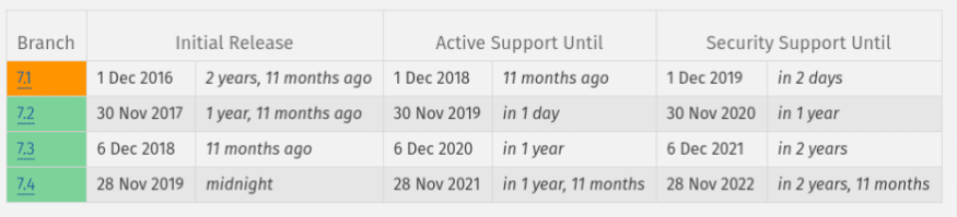 php 7.1 和 7.2 的安全性最后一次安全性更新将在 12 月 1 号截止.