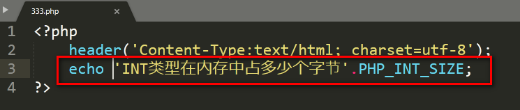 使用常量php_int_size 来获取int类型在内存中占多少个字节,如图所示: