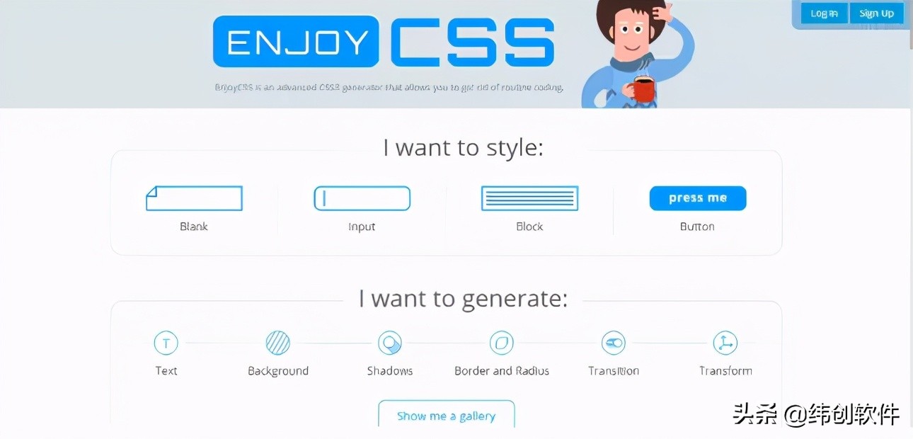 EnjoyCSS提供了一个简单的交互界面,对于并不擅长CSS的朋友简直就是救星。设计元素,自动输出相应的 CSS 代码。可以输出LESS、SCSS 代码,甚至可以指定支持哪些的浏览器和,浏览器的最低版本,使用起来非常方便,缺点是并不适合复杂的前端项目。