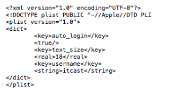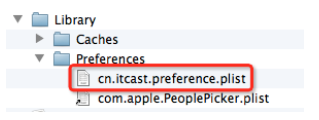 (1)偏好设置是专门用来保存应用程序的配置信息的, 一般情况不要在偏好设置中保存其他数据。如果利用系统的偏好设置来存储数据, 默认就是存储在Preferences文件夹下面的,偏好设置会将所有的数据都保存到同一个文件中。