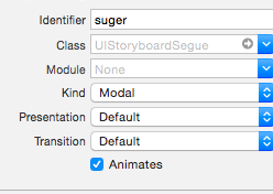 在storyboard中两个控制器间建立一个segue联系,我们可以取一个名字: