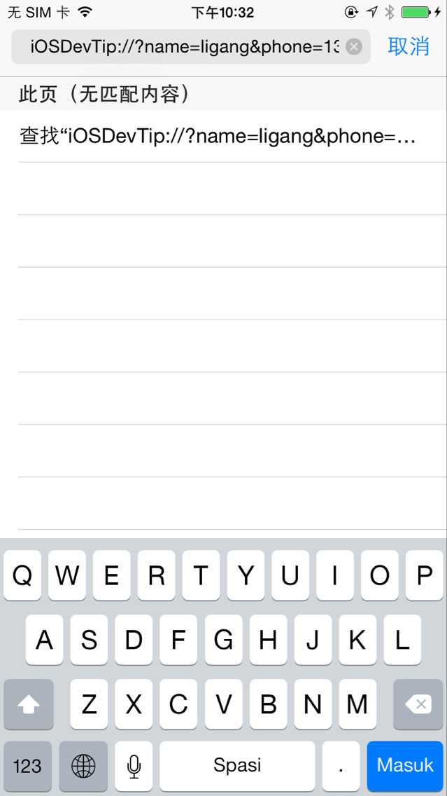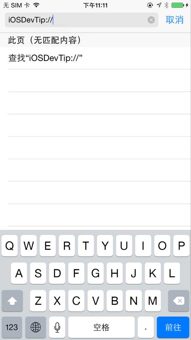 既然已经配置好url schemes,那么我们可以来款速测试一下,我们设置的url schemes是否有效。打开safari,在地址栏里输入:iosdevtip://