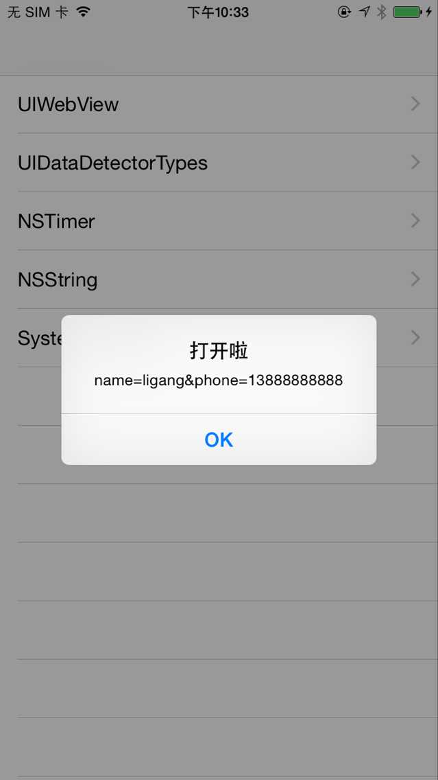 为了方便测试,我们在appdelegate里面添加一个uialertview,当app被成功打开时,会提出提示: