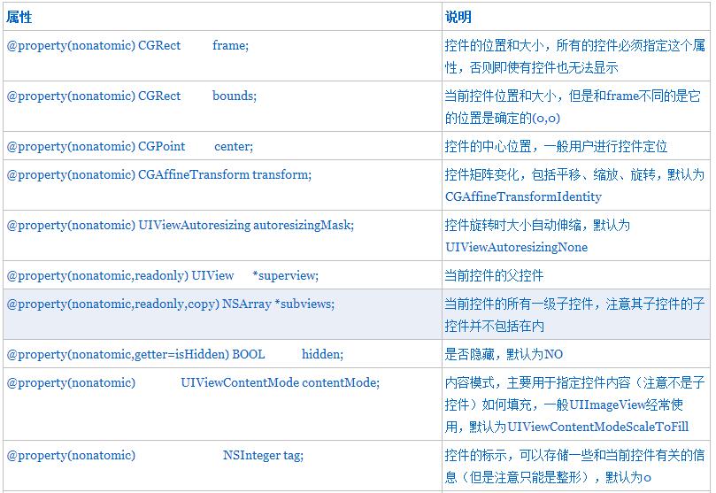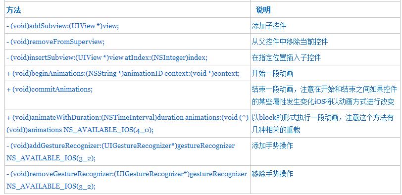 当然uiview的定义文件(.h文件)也是相当长的,我们如果全部截图也没有意义。这里列出常用的属性和方法。