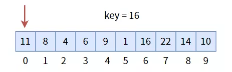 比如,给定一个数组[11, 8, 4, 6, 9, 1, 16, 22, 14, 10],给定目标值 key,若找到,则返回其数组下标;否则,返回 -1: