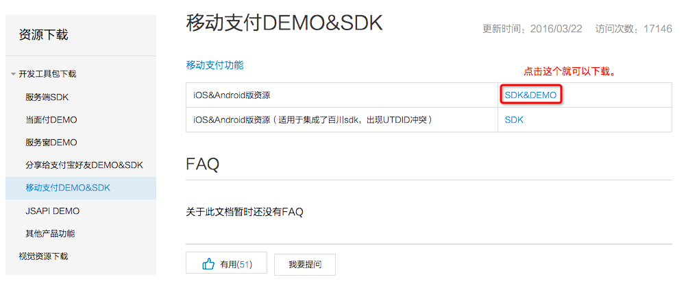 然后就会进入下面的一页,网址这里顺便给出:https://doc.open.alipay.com/doc2/detail.htm?treeid=54&articleid=104509&doctype=1