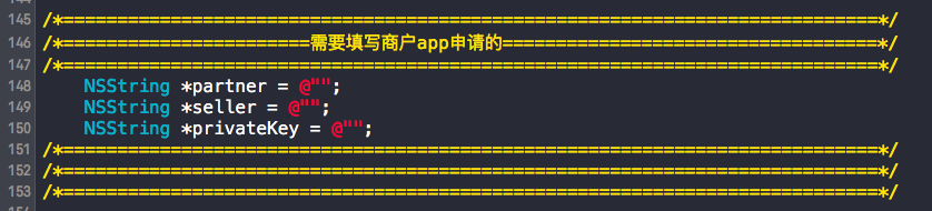 从上面图中的148、149、150行代码,我们可以看到,我们需要三个参数的值:partner、seller、privatekey。