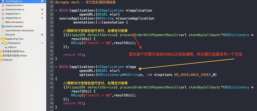 集成过程基本上就是按照上面的四个流程就可以完成集成ios的支付宝sdk。