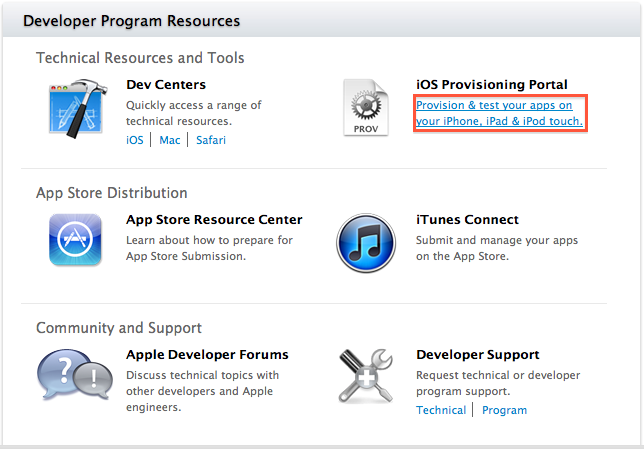 (1)登录ios dev center,登录成功后,点击(ios provisioning portal对应链接),如图所示: