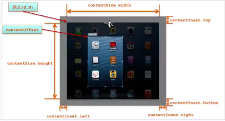 3)@property(nonatomic)uiedgeinsetscontentinset; 这个属性能够在uiscrollview的4周增加额外的滚动区域
