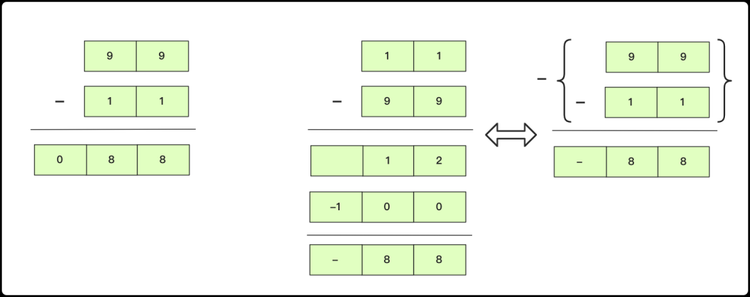 两个正数,如果大数减去小数,那么一切正常,结果是一个正数;但如果小数减去大数,那么结果将是一个负数,并且结果处理起来比较麻烦。所以在这里全部转成大-小处理(大-小不存在不能借位的情况)。