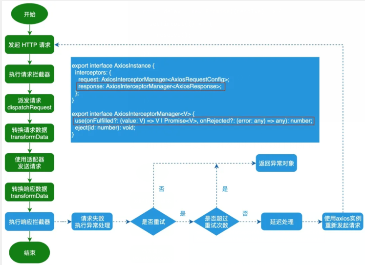 下面阿宝哥将介绍如何使用 Axios 提供的拦截器或适配器来实现请求重试的功能,如果你对 Axios 的拦截器或适配器还不熟悉的话,建议先阅读 77.9K 的 Axios 项目有哪些值得借鉴的地方 这篇文章。接下来,我们先来介绍如何使用拦截器实现请求重试的方案。