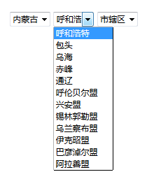 要求:写一个省市区(或者年月日)的三级联动,实现地区或时间的下拉选择。