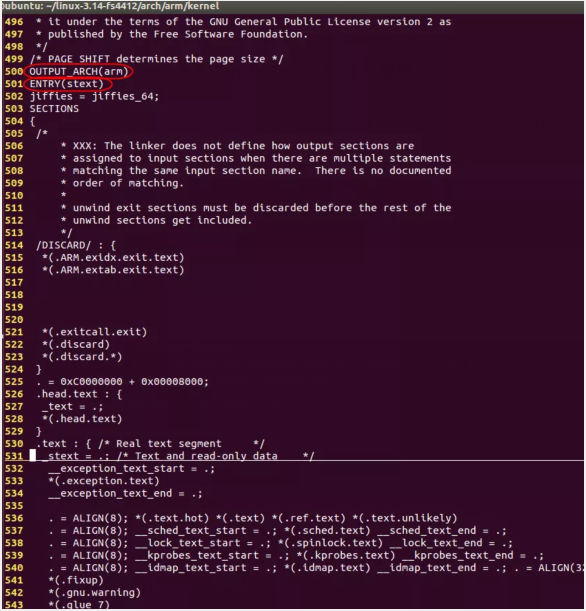 linux内核的内存分布也是依赖lds文件定义的,linux内核的编译我们暂不讨论,编译好之后会再以下位置生成对应的lds文件: