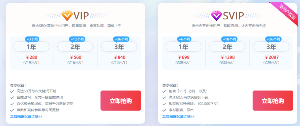 VIP会员1年送3个月,2年送12个月,3年送36个月;SVIP及以上会员1年送6个月,2年送18个月,3年送36个月。