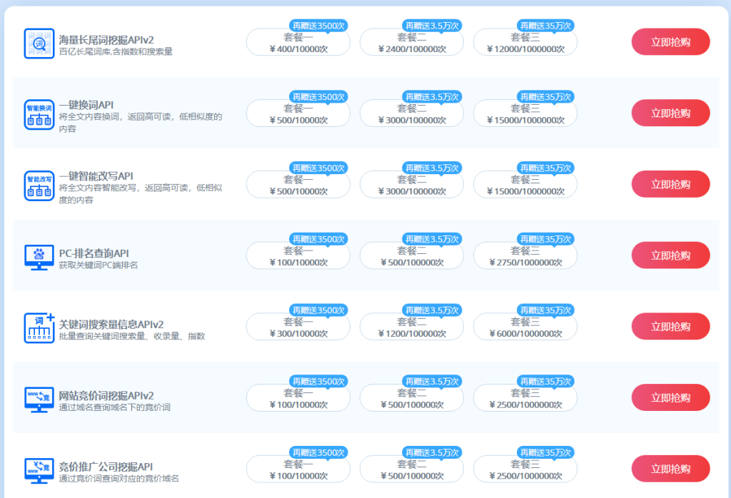 近日5118营销大数据平台推出七夕礼遇会员超值购活动,会员最高买3年送3年,API购买即送35%,购买AI套餐即送35%,这次5118七夕活动会员买就送,惊喜连连,有需要的赶快购买吧。