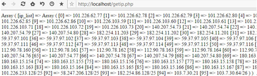 我们需要的是数组中的[ip_list],所以我们单独取出[ip_list]的数组集,并通过foreach循环出每一个微信服务器ip,