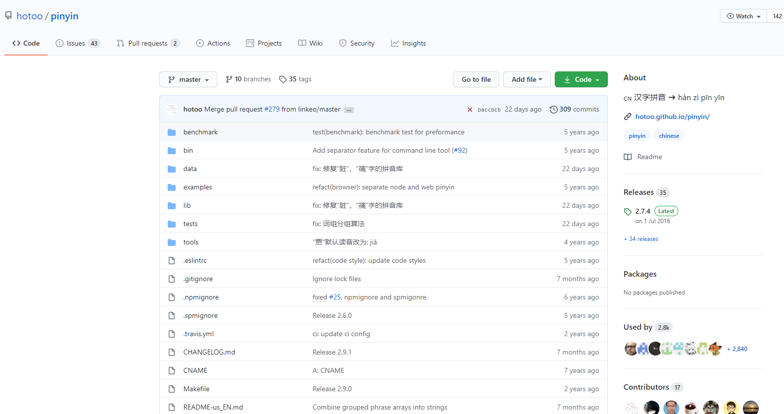 github网址:https://github.com/hotoo/pinyin