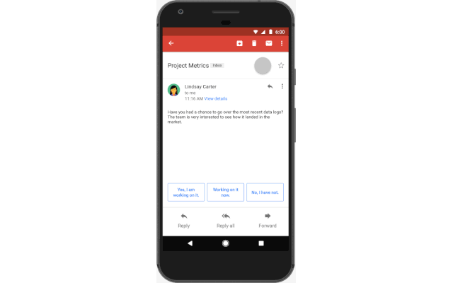你用过 Gmail 的智能回复吗?这是 AI 驱动的,能根据你的电子邮件内容给出 3 个回复建议。而它就是用 TensorFlow 构建的。