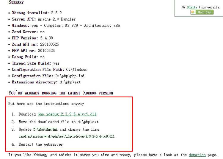 (2)安装xdebug按照上图下载“php_xdebug-2.3.2-5.4-vc9.dll”,将其复制到d:\\php\\ext\\目录。