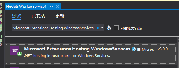 部署为Windows服务运行1.在项目中添加nuget包:Microsoft.Extensions.Hosting.WindowsServices