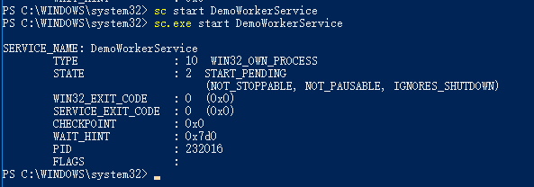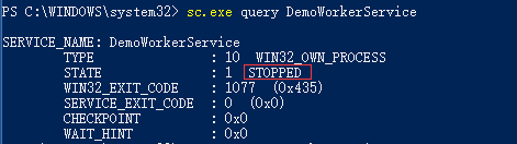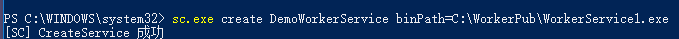 sc.exe create DemoWorkService binPath=C:WorkerPubWorkerService1.exe
