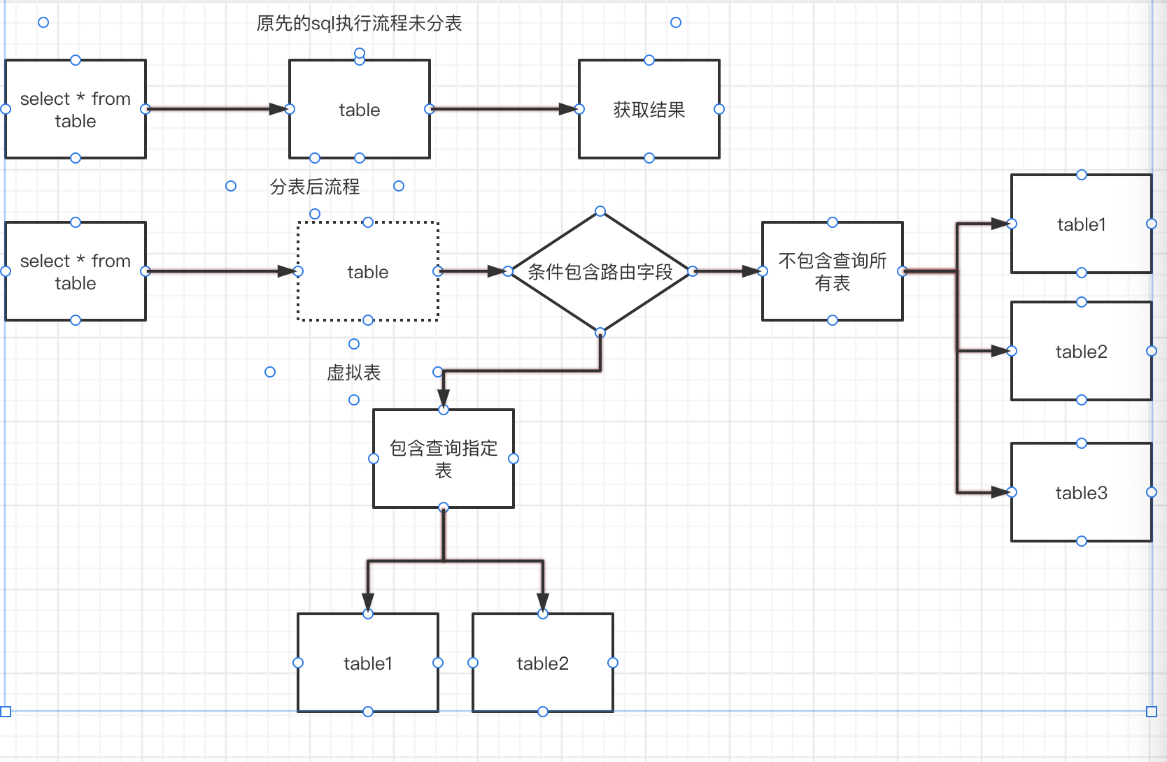 如果本次查询会做落到table1 和table2那么会改写成 2句sql
