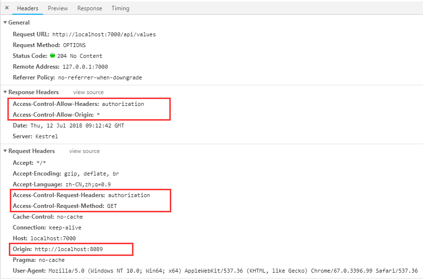 服务器收到请求后,需要获取这三个请求头中的值,并进行判断,确认是否允许进行跨域。如果服务器返回的请求头中没有任何CORS相关的请求头信息,浏览器会认为不通过预检,也不会进行第二次请求。