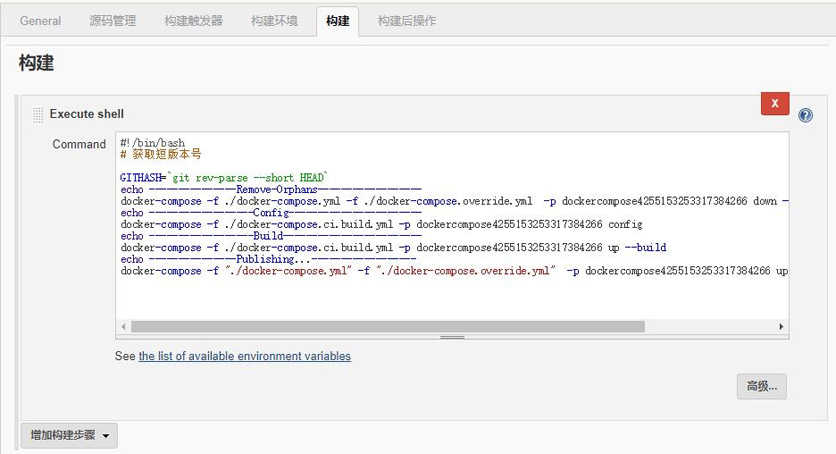 (4)增加一个Execute Shell 脚本,并填写以下脚本内容