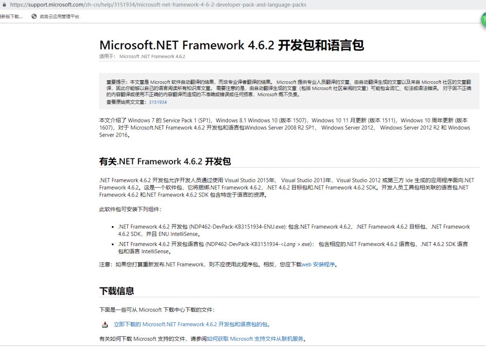 4.6.2的目标包的下载地址:https://support.microsoft.com/zh-cn/help/3151934/microsoft-net-framework-4-6-2-developer-pack-and-language-packs