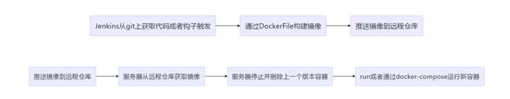 .net core对Docker是大力支持了,在Core之前,我就特别羡慕我在Docker中使用一些工具的体验–一行指令就可以工具自动安全完整了,不用费力进行环境配置,而且对系统的入侵特别少。所以Core出来之后,我就一直会尝试在Docker中运行Core程序 但是一直没敢上正式环境,正好现在遇到自动化部署的问题,就打算先从测试环境开始,把Docker环境一步步的能应用到正式环境上。大概的流程是这样的: