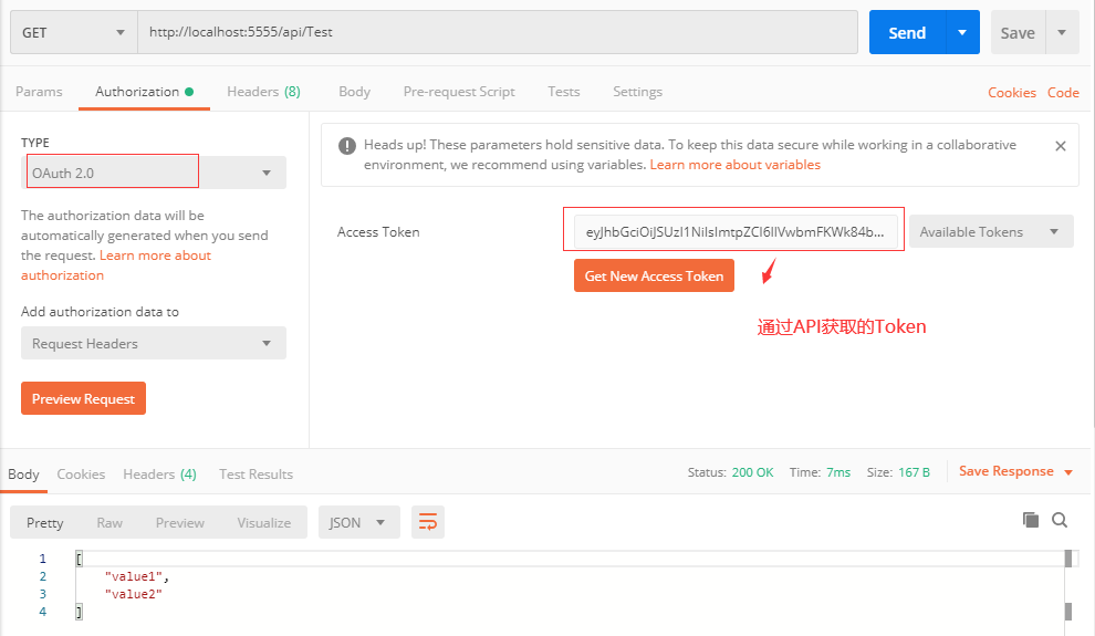 访问被加权的API接口,我们这里需要先请求获取Token,然后请求加权接口时带上token参数。