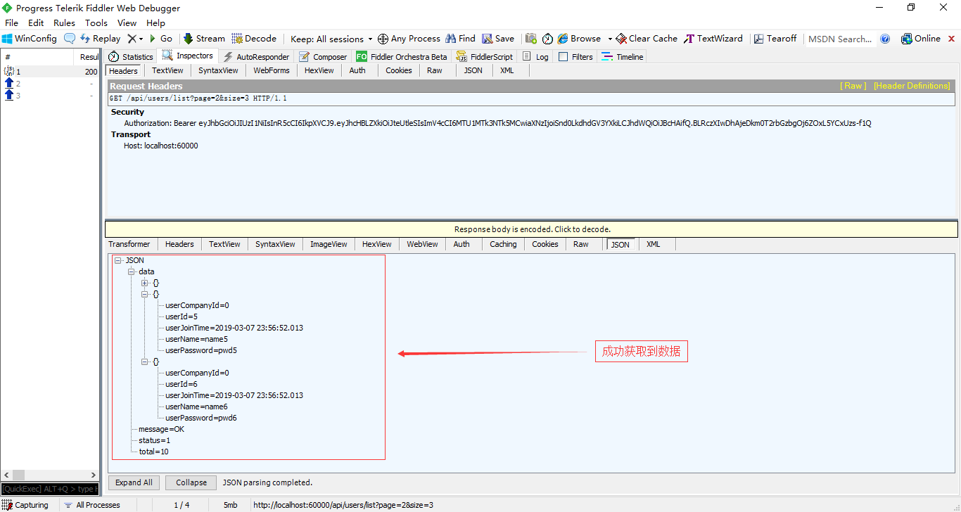 示例要求能演示获取Token及如何使用该Token访问数据资源,在Demo中实现了JWT的颁发及验证以及重写一个ActionAuthorizeAttribute实现对具体数据接口的调用权限控制,先看一下项目截图: