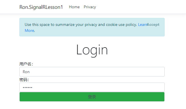 https://github.com/lianggx/Examples/tree/master/SignalR/Ron.SignalRLesson2