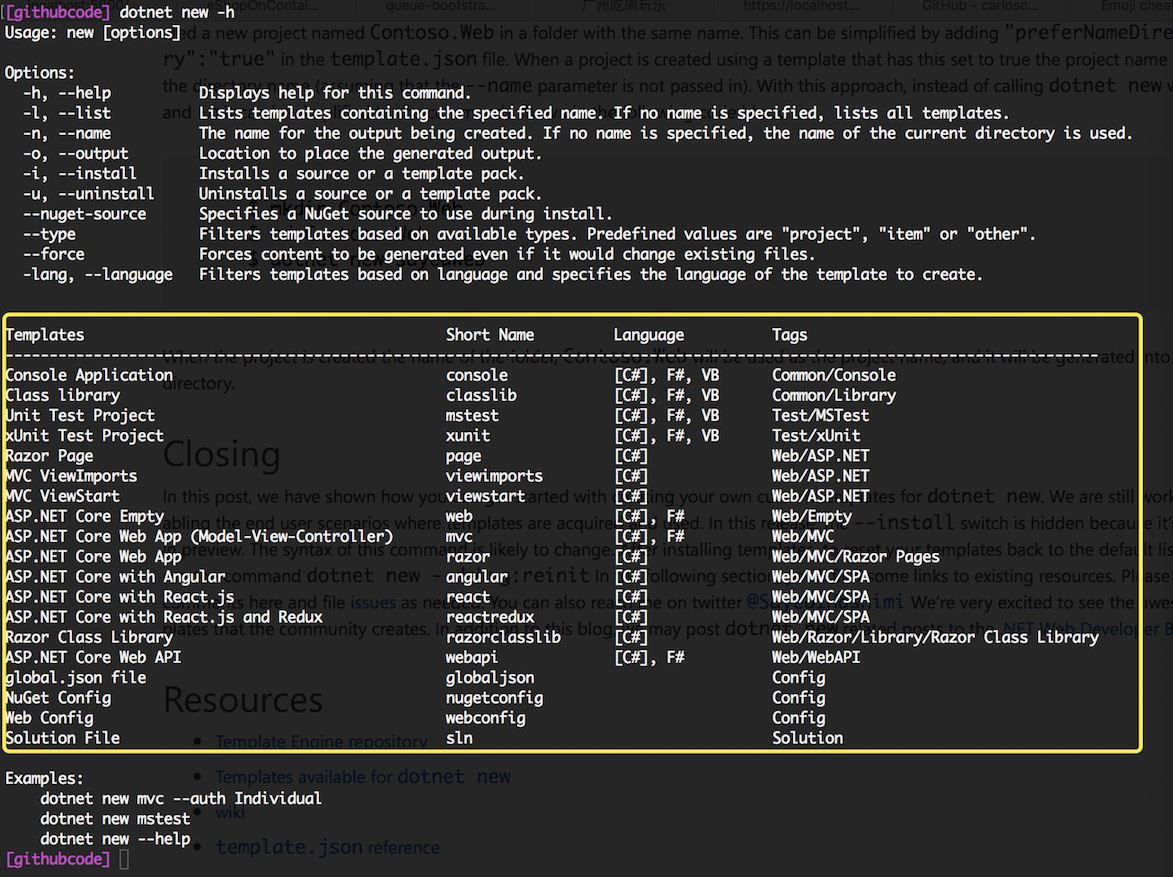 开始正题之前,我们先看一下dotnet cli自带的一些模板。