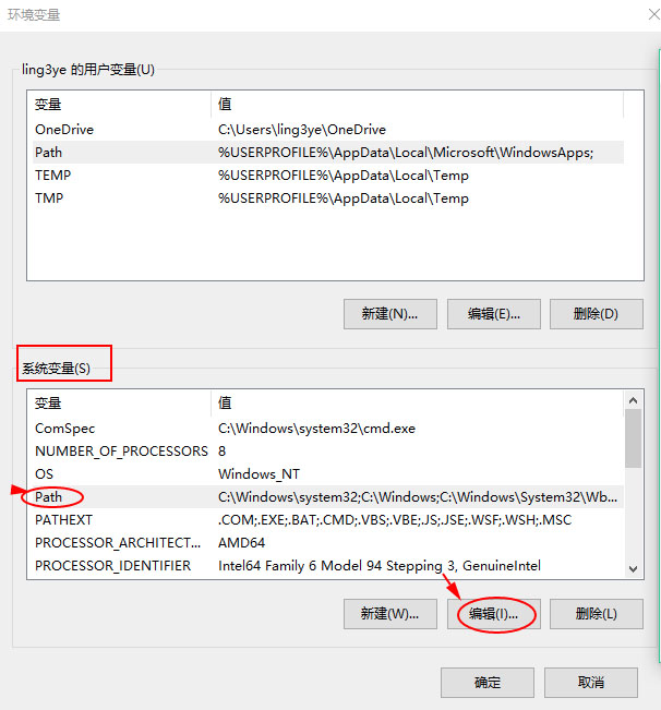 在环境变量 对话框中,找到 系统变量 列表中的 PATH 变量 点击编辑按钮进行编辑