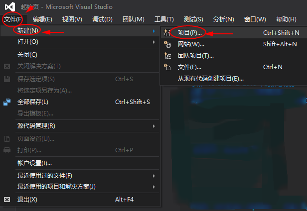 我们首先打开VS2015,进行如下操作