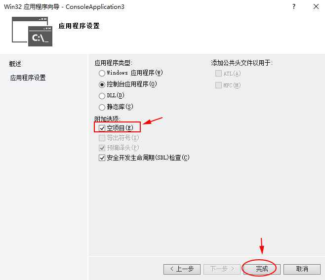 接下来,我们要建立一个空项目,请勾上,再按完成。